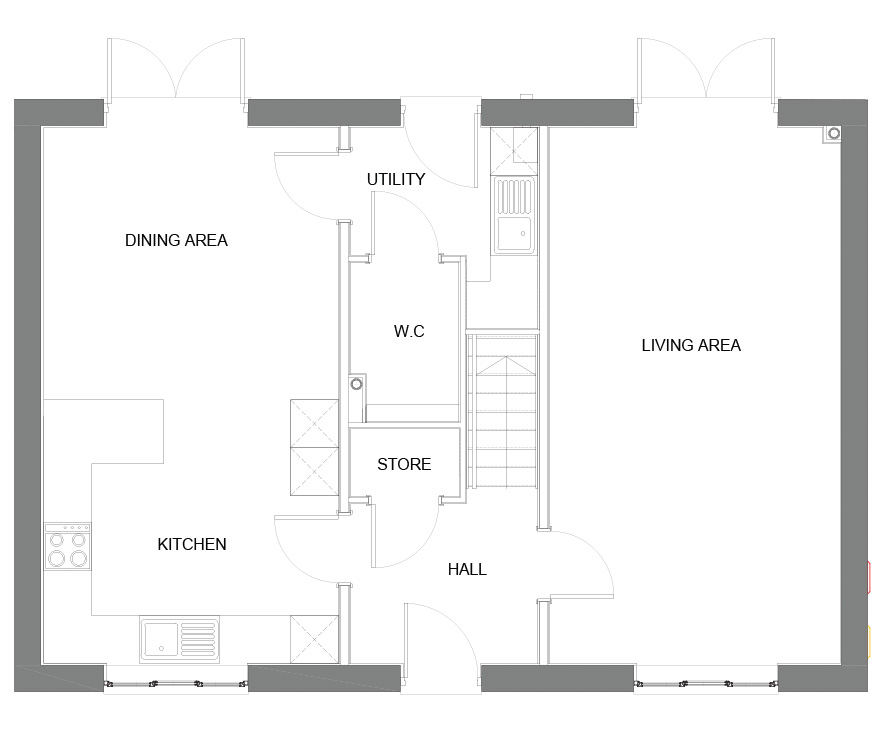 This stunning four-bedroom home has a kitchen and dining area to the left of the property, with double doors out to the garden at the back. To the right, there is a large living room that runs the full length of the property and again opens out to the back garden. The Foxglove also benefits from a downstairs WC and utility room.